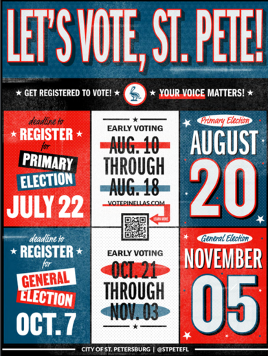 We’re excited to announce, “St. Pete Votes!” a civic engagement campaign designed to encourage St. Pete residents to let their voices be heard by registering to vote.